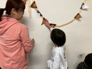第二教室のレクは『運動遊び&ハロウィンの飾りつけ』です。