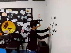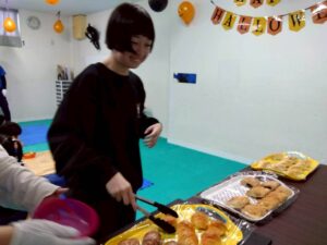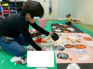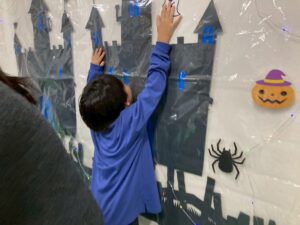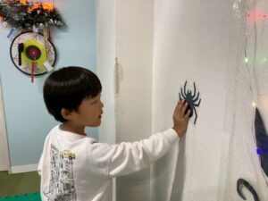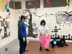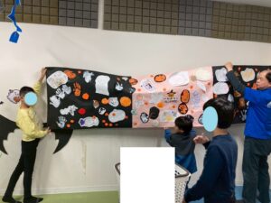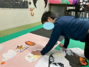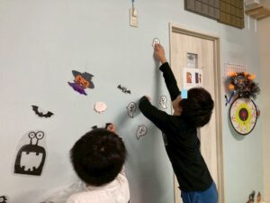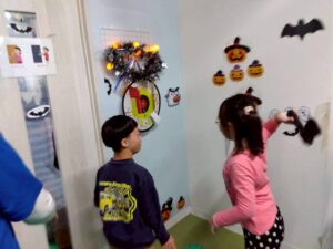 明日のハロウィンイベントに向けて壁や天井を装飾しましたよ☆