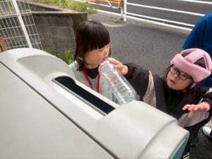 余暇時間には、雨が止んでいる間にペットボトルのリサイクルに出かけたり