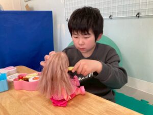 本日訓練室①では「2月の工作」を行いました。今回はたまごの殻を使い、雛祭り工作を作りました!