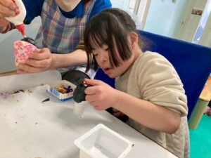 糊で貼ったり描いたり、細かい部分も集中して行う児童の姿をどうぞ!