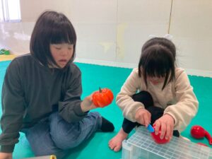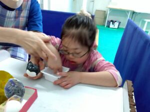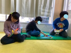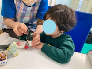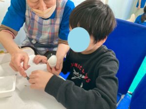 本日訓練室①では「2月の工作」を行いました。今回はたまごの殻を使い、雛祭り工作を作りました!