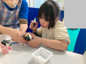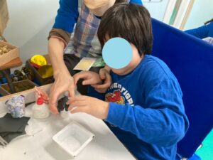 糊で貼ったり描いたり、細かい部分も集中して行う児童の姿をどうぞ!