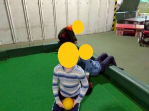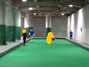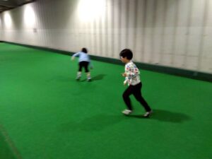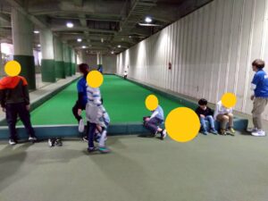 今回は地下トラックとローンボウルス場を借り、追いかけっこをする児童、ひたすらに走る児童ローンボウルス場ではボールを転がしてキャッチボールを行うぞ児童も!