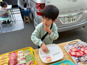 色々なお菓子が並ぶトレーとにらめっこして、好きなおやつを厳選していました♬