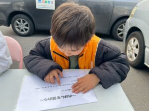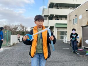 みんな真剣な顔で掴んだキャップを見つめて、お箸を持つ手の感覚をしっかりと意識して取り組んでいました!