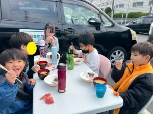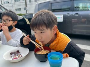 レクで練習したお箸を使ってラーメンを食べました!