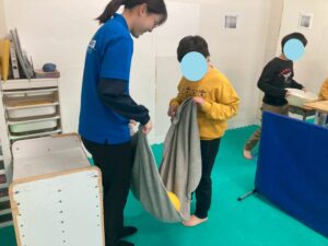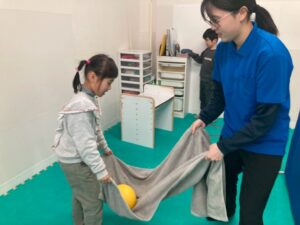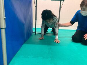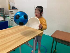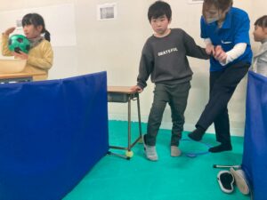 バランスボールを使った体幹を鍛える場所や、トンネルをくぐる空間認識を通して