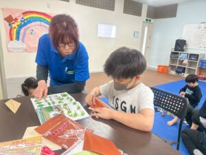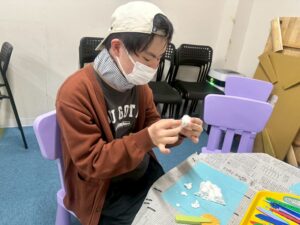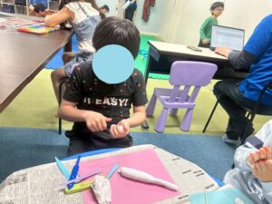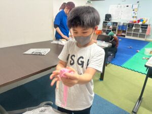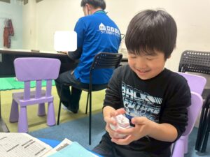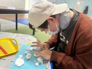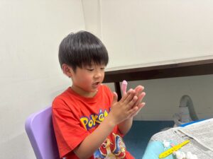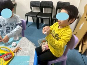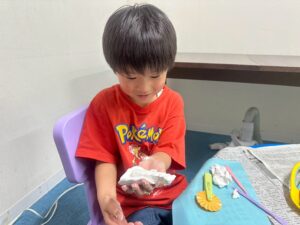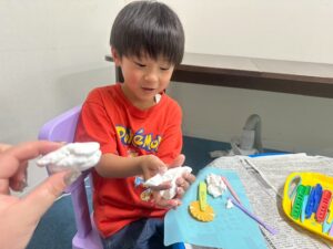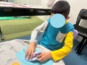訓練室②では「感覚統合遊び」を行いました。今回使用するのは粘土、児童たちが各々に粘土を使い指先を動かしていきました!「お寿司」や「ご飯」を作る児童や、どこまで長細くできるかチャレンジする児童や綺麗な球体にする児童も!そんな児童たちの姿をどうぞ!