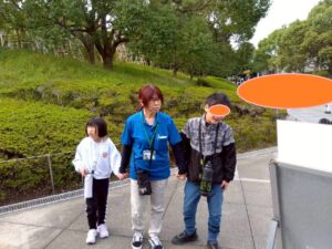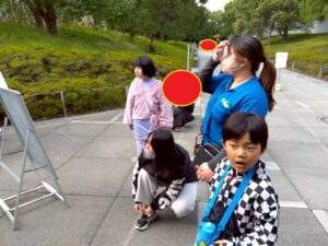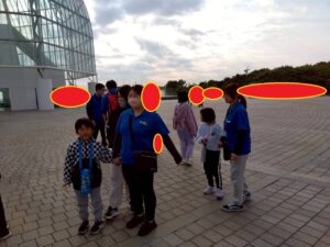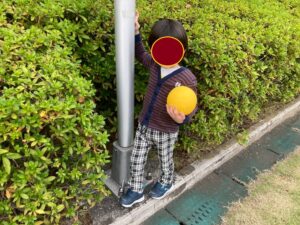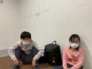 第二の避難訓練は火事を想定しました。身体を低くして玄関まで。点呼して避難場所の小学校へ慌てず素早く移動です。真剣な表情が印象的でした。