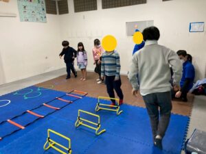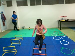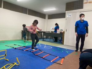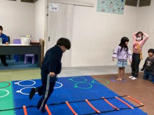 今日のライズ。第一はリトミック、そして第二は避難訓練です。音楽の中で大縄跳びにチャレンジの第一のお友達。大縄を目で追いタイミングを計ってジャンプ。成功して笑顔、もうちょっとで飛べたのに…で笑顔。室内は声援と笑顔がたくさんあふれていました。
