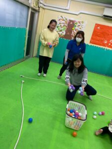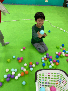 10月からボール集めの種目になり、チームで協力をしてカゴにボールを入れます。
