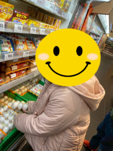 「先生何買うの?」と、ホットケーキの粉、牛乳、たまごと、伝えると店内を探して「あった!どれにしようか?」と相談している場面もありました。