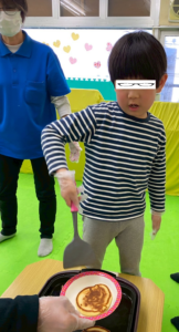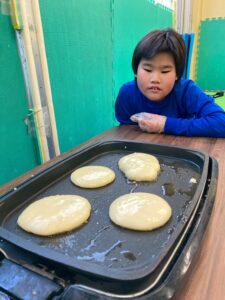 お友だちと協力しながら作ったホットケーキのお味はどうかな(・・?