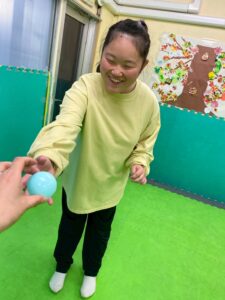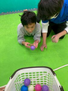 10月からボール集めの種目になり、チームで協力をしてカゴにボールを入れます。