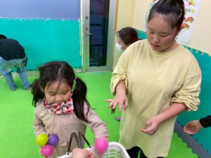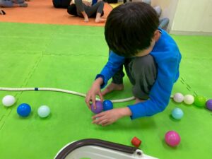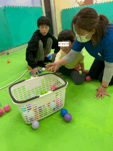 お友だちとの協力、色の認識、見ているお友だちは応援をする。