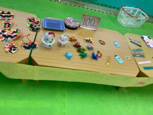 今日のマネー講座は、ライズフリーマーケットと称して、日々、活動の中で作った工作物やライズで余っているものを