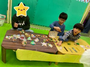 今日は、Xmasツリーの貼り絵が大人気でした(*^^*)