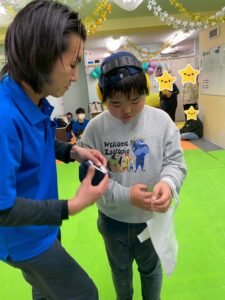 ボールの感触を足で確認してから手で掴んでいるお友だちもいました✨