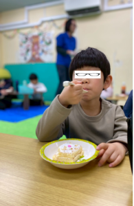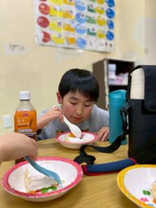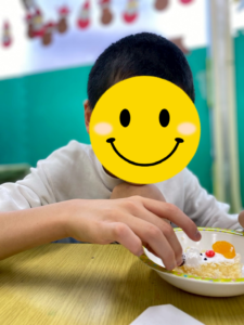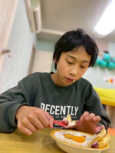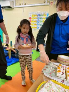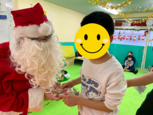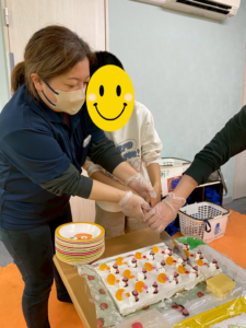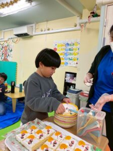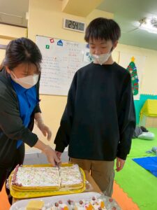 ケーキを1人ずつ取りに来て「メリークリスマス」🎄