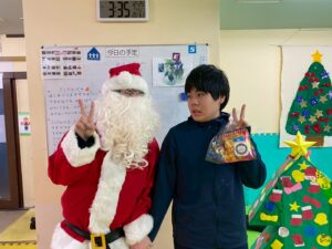 サンタさんからお菓子のプレゼントをもらいました(⌒∇⌒)