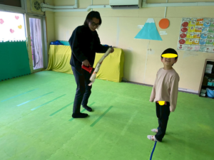 順番に並んで、縄を踏まないようにジグザグにジャンプするよ。