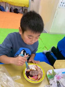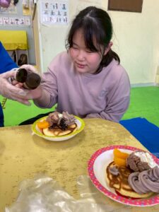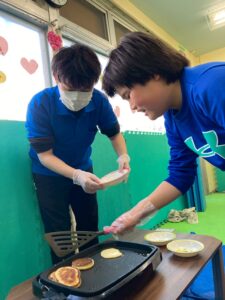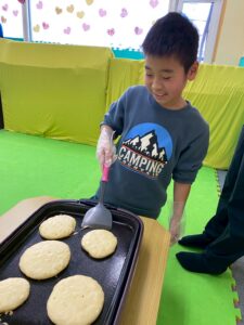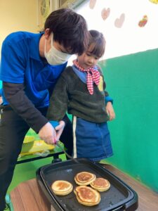 お友だちと協力しながら作ったホットケーキのお味はどうかな(・・?