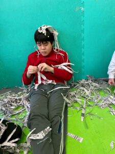 本日のレクは新聞紙遊び!