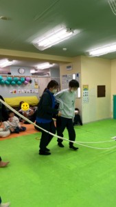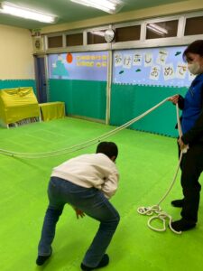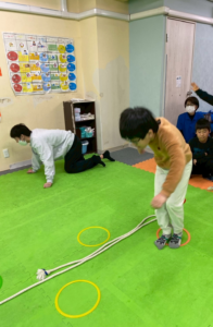 木曜日のお友だちも大縄を使って3か月間バランスを取ったり体幹トレーニングをしたりしていこう!!