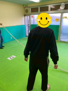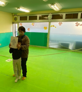 最初は、いつものようにラジオ体操と室内さんぽ♪
