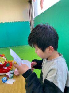 自由時間にはアイスクリームやカップのアイスを工作で作り、お店屋さんが開かれていました。