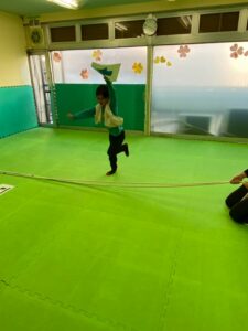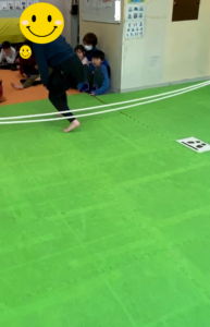次は順番に並んで、縄を踏まないようにジグザグにジャンプするよ。