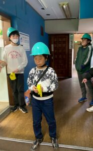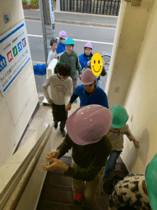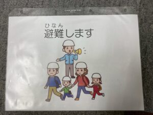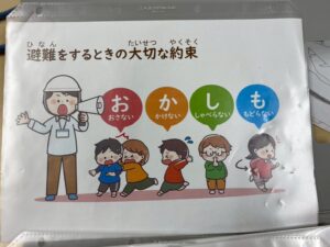 昨日までは水害ということで上に避難をしましたが、本日は火災が起きてしまったときの訓練を行いました。