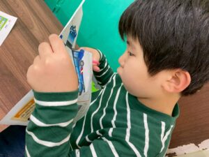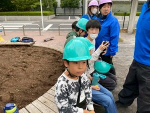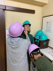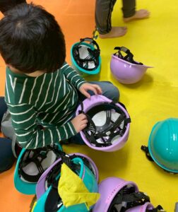 今日もお友だちが使用したヘルメットを拭いてくれるお手伝い!!