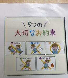 「おさない」「かけない」「しゃべらない」「もどらない」「ちかづかない」の5つです。