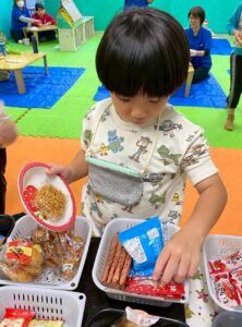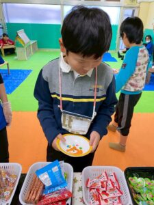 限られた所持金の中から選んで購入する事を皆で楽しく学びました。