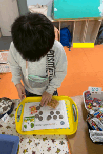 お店屋さんのほうは、お店屋さんってなんだろう?というお友だちもちらほら。これからお勉強していこうね。