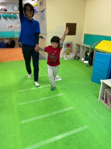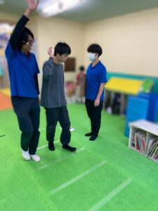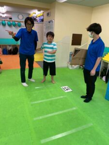 白線の内側を歩く練習を行いました。