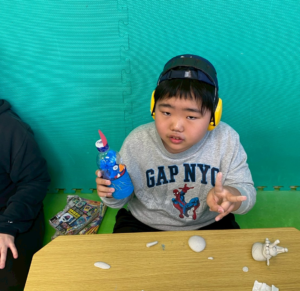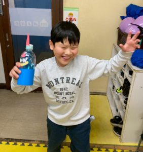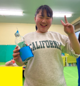 紙をペットボトルに貼るなどの細かい作業を交えながら工作を行いました。