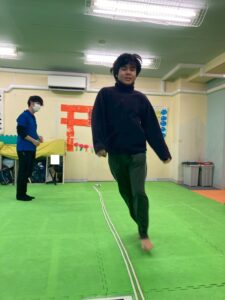 大縄をジグザグにジャンプする「ジグザグジャンプ」と