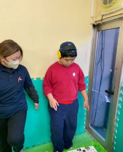 まずはラジオ体操とさんぽの音楽に合わせて室内をお散歩します。